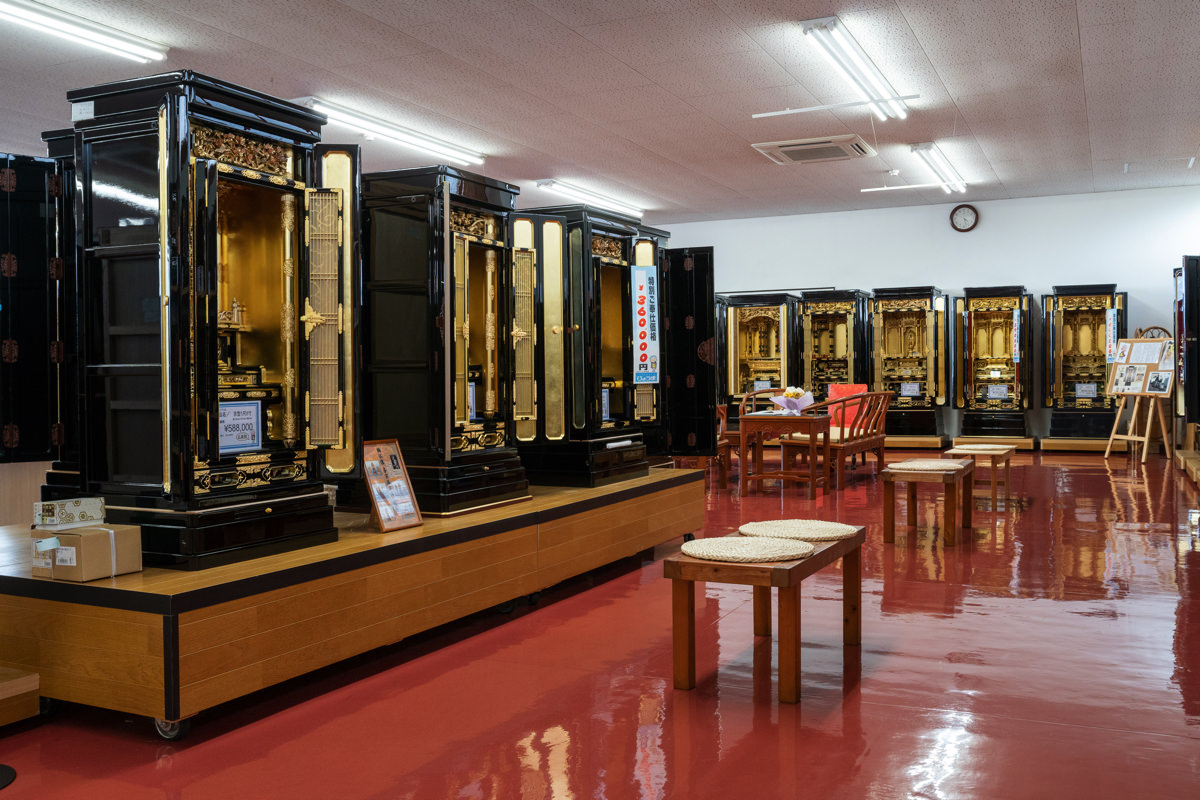 | 見学内容 | 社会見学では店舗での接客の様子、商品の説明などを受けてもらい、仏壇製造工場では金箔貼り見学、石材工場では墓石の設計図(CAD)作成を体験してもらいます。 |